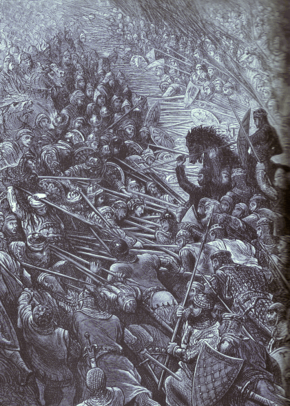 Meanwhile, much else is happening, far too much to mention. But for two, the Moors are laying seige to Paris with bloody incursions into the city, and Angelica, after a multitude of escapes finally falls in love with a young Saracen, and they go about the forest carving their names on the trees.