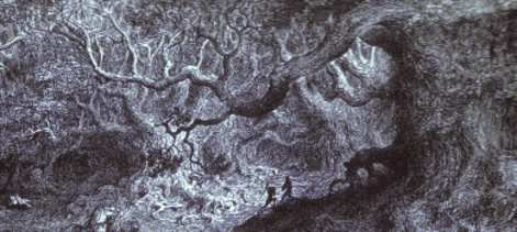 leaves. Damaging the tree gives it the power toforms Ruggerio that it is really one of Charlemagne's champions, Astolpho, who had been lured away on the back of a whale by Alcina a wicked enchantress who had kept him as a lover until she had tired of him, and then had turned him into a tree. Her previous lovers had also met similar fates. Though warned, Ruggerio is seduced by Alcina into a life of shameful sloth and luxury until rescued by Bradamante's patroness, the good sorceress, Melissa. The tree motif goes back to Vergil's Aeneid, Book III, and is a staple of heroic literature. We even use it in our novel, Mythosphere.