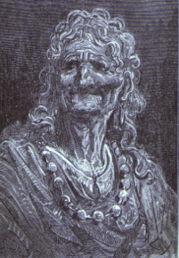 Orlando finds the names carved on the trees, and realizing that he has lost Angelica, goes on an insane rampage destroying or killing everything in his path. Astolpho ends up in the mysterious Chrstian kingdom of Ethiopia in the heart of Africa and endears himself to the emperor by freeing him from the harpies that attack at mealtime and befoul his food, a motif that begins--as far as I can determine--with the story of the Argonauts, is reused by Vergil in the Aeneid, and finally by Shakespeare in The Tempest. Astolpho takes a journey to the moon in Elija's chariot. This is the place that all things lost on earth end up, and so he finds Orlando's wits and brings them back with him. He collects a large army from Ethiopia and marches on the Saracan forces from the south, wrecking enormous havoc. Orlando's wits are restored, the Saracans are driven from Europe, and Bradamante and Ruggerio, after a long lead-up, are finally married. As the marriage approaches the woman warrior grows encreasingly demure and lady-like.