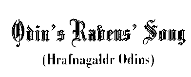 Here is Thorpe's introduction: "This very obscure poem has been regarded as a fragment only of a poem, of which the beginning and end are wanting. With regard to the beginning, the want may possibly be more apparent than real; the strophes 2-5 being in fact a sort of introduction, although they do not at first strike us as such, in consequence of the obscurity of the first strophe, which seems very slightly connected with the following ones, in which the gods and dwarfs are described as in council, on account of certain warnings and forbodings of their approaching downfall, or Ranarok. Another point of difficulty is its title, there being nothing in the whole poem to connect it with Odin's ravens, except the mention of Hugr (Hugin) in the 3rd strophe. Erik Halson, a learned Icelander, after having spent or wasted ten years in an attempt to explain this poem, confessed that he understood little or nothing of it. In its mythology, too, we find parts assigned to some of the personages of which no traces occur in either Saemund's or Snorri's Edda; though we are hardly justified in pronouncing it, with more than one scholar of eminence, a fabrication of later times.