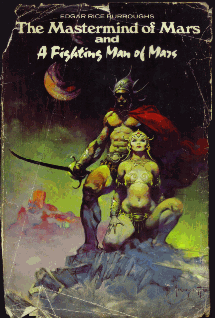 Dustjacket for The Mastermind of Mars and a Fighting Man of Mars by Edgar Rice Burroughs. Nelson Doubleday, Inc. The illustration by Frank Frazetta is copyrighted, 1973.
