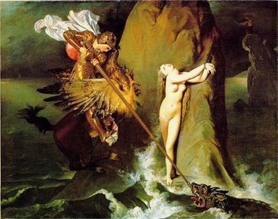 But then the Arthur stories came out, and this old fashioned war and politics stuff began to seem a little stiff and colorless--time for an update. And, given a century or so, with hints from the Arthur cycle, the Charlemagne cycle become something to really notice. The culmination of the process is Orlando Furioso (Roland, raving mad). Now there are love interests all over the place, sexy temptresses, buxom female knights, wicked enchanters, rings of invisibility, magic pools to make you fall in or out of love, dragons, hippogriffs, griffons--you name it. And all of it woven together in a great number f different story lines that separate and cross like the weave of a tapestry. This story, more than any other, except the Iliad, is the origin for the structure of Mythosphere.