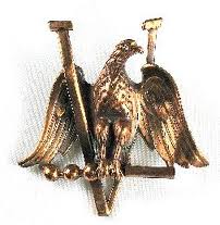 Here again we have the "V" and eagle as symbols of power, as in the paintings of Zeus and Napoleon above. This time it is in the form of a pin and a postage stamp, both intended to boost the troops in World War II. Archetypal patterns never go away, they just keep coming back in new guises and contexts.